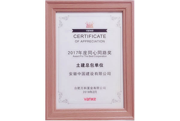 2017年度同心同路獎(jiǎng)-合肥萬(wàn)科置業(yè)