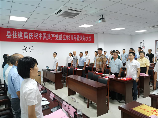 會(huì)議安排觀看了紀(jì)念“七一”微視頻《我宣誓--》,并宣讀了表彰決定。住建局黨委書記、局長陶海波同志給全體黨員上了一堂微黨課——《信仰的力量》,并向各黨支部派發(fā)了“黨支部建設(shè)工具箱”及《習(xí)近平新時(shí)代中國特色社會(huì)主義思想學(xué)習(xí)綱要》,全體黨員還重溫了入黨誓詞。