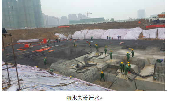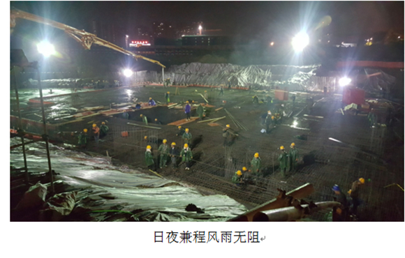 五月伊始,公司各兄弟項目部不斷傳來喜訊:蕪湖萬科城、信達天御、華府五期和森林城C4均傳來捷報,我信達公園里項目部也不甘示弱,在兄弟們日夜兼程風雨無阻的拼搏下,終于于2016年5月30日完成售樓部結構封頂任務,圓滿完成合同節(jié)點工期。信達.公園里項目S12#樓(售樓部)土建工程施工項目位于合肥市濱湖新區(qū)杭州路與廬州大道交口,總建筑面積4248.30平方米,占地面積約1900平方米,建筑高度度15.35米。結構類型為現(xiàn)澆框架結構,地下1層為下沉庭院、商業(yè),負一層層高4.5米,地上3層為商業(yè),一層層高5.6米,二層層高4.8米,三層層高4.5米。信達.公園里項目S12#樓(售樓部)項目部,開工日期2016年4月15日,結構封頂工期45天。該工程業(yè)態(tài)豐富,結構形式復雜,且?guī)в幸粚拥叵率遥畹蛯痈?.5米,局部為高支模,且為汽車吊作業(yè);在工程施工階段,恰逢合肥陰雨天氣,45天的工期里下了十幾天的雨,且在施工過程中設計圖紙不斷的進行變更,在如此艱難的客觀條件下,項目部兄弟無畏艱難,齊心協(xié)力,通過增加班組的人力和物力投入,日夜兼程、風雨無阻,終于克服的一切困難,圓滿的完成任務,給業(yè)主交出了一份滿意的答卷。