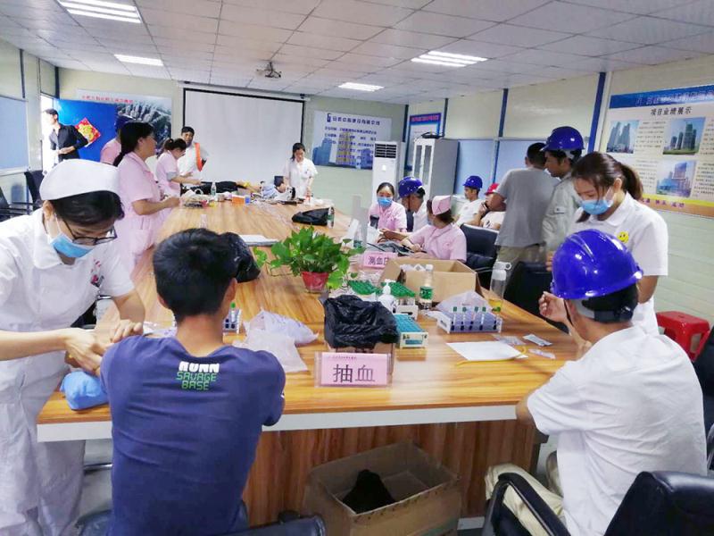 圖為中固建設(shè)?萬科紅郡項目員工參加健康體檢