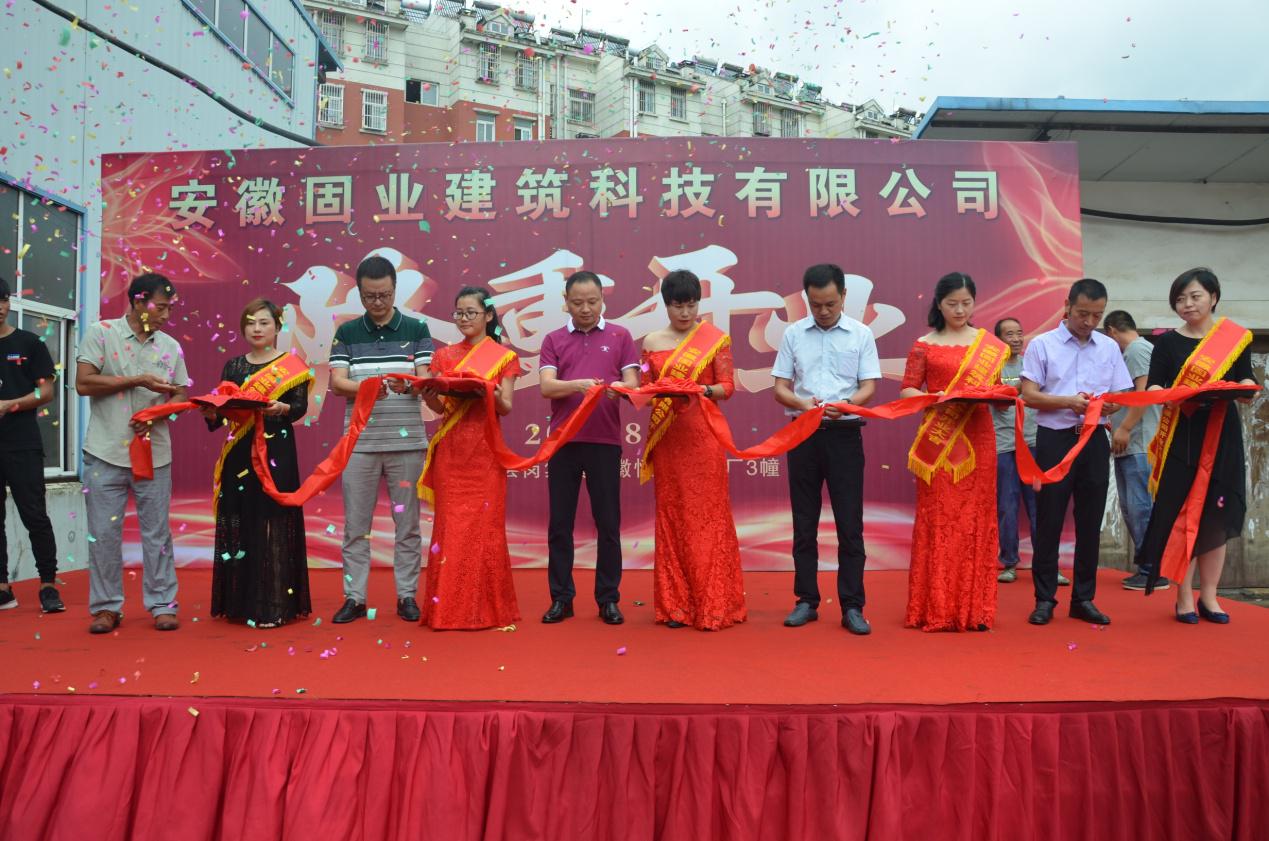 在開業(yè)典禮上,陶總、徐總、陸總等與固業(yè)建筑公司負(fù)責(zé)人共同為固業(yè)建筑科技公司剪彩。